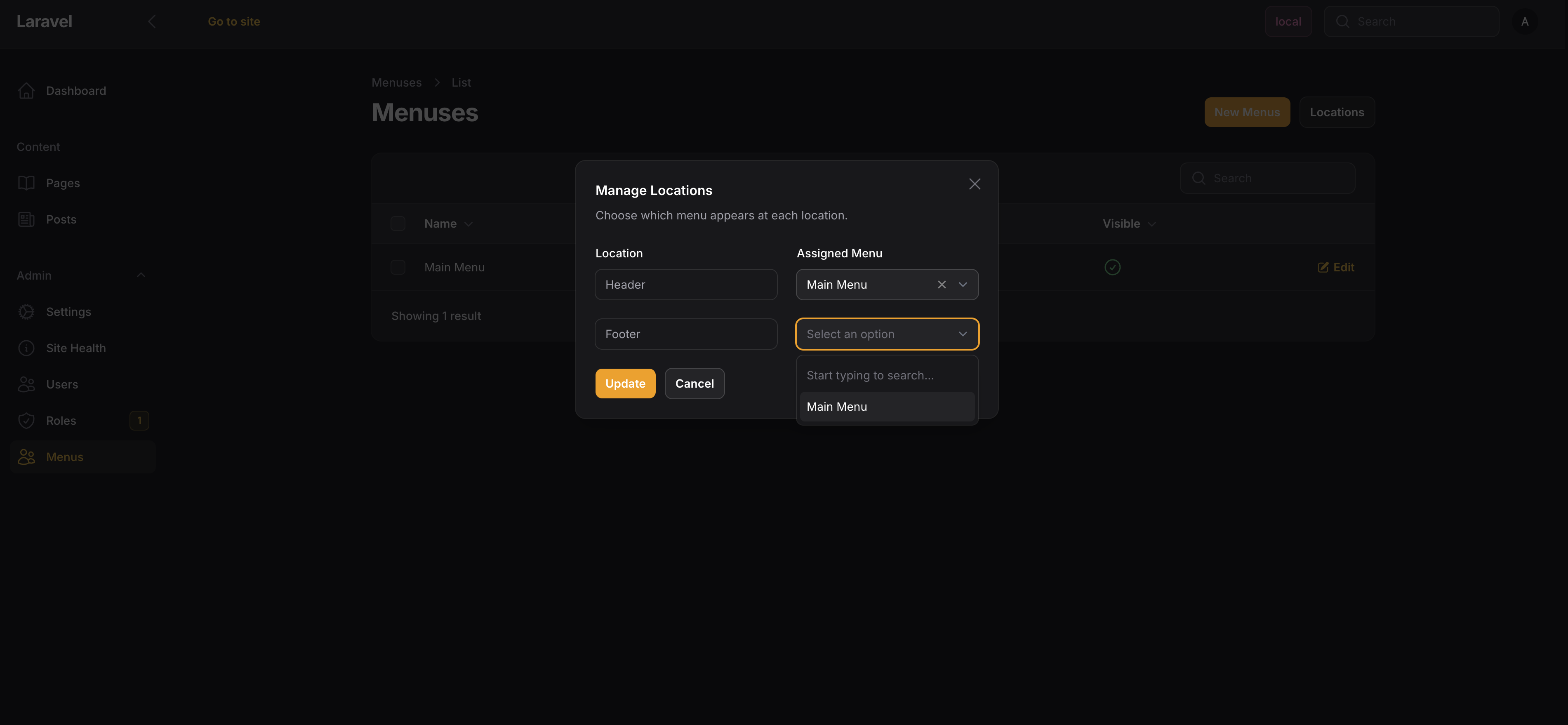 Menu Locations